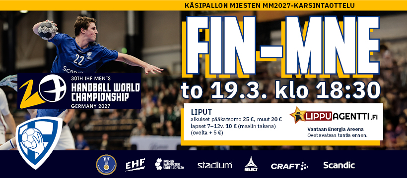 19.3.2026 klo 18.30 Suomi-Montenegro, Vantaan Energia Areena (Rajatorpantie 23, Vantaa)