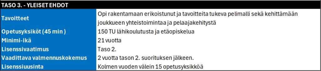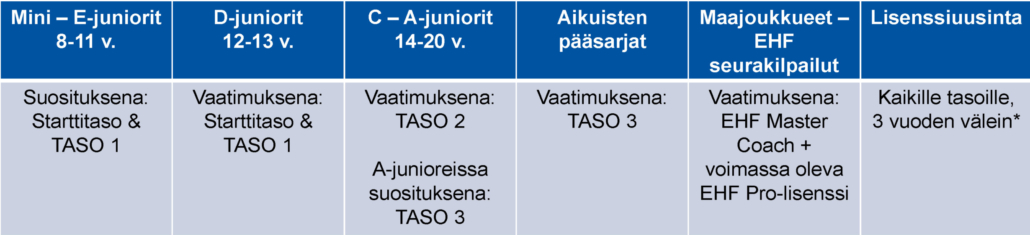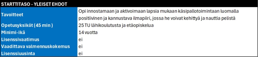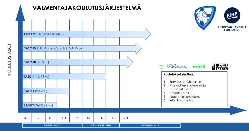 Valmentajakoulutus käydään kaudesta 2025-2026 eteenpäin EHF Rinck Convention standardin mukaan.